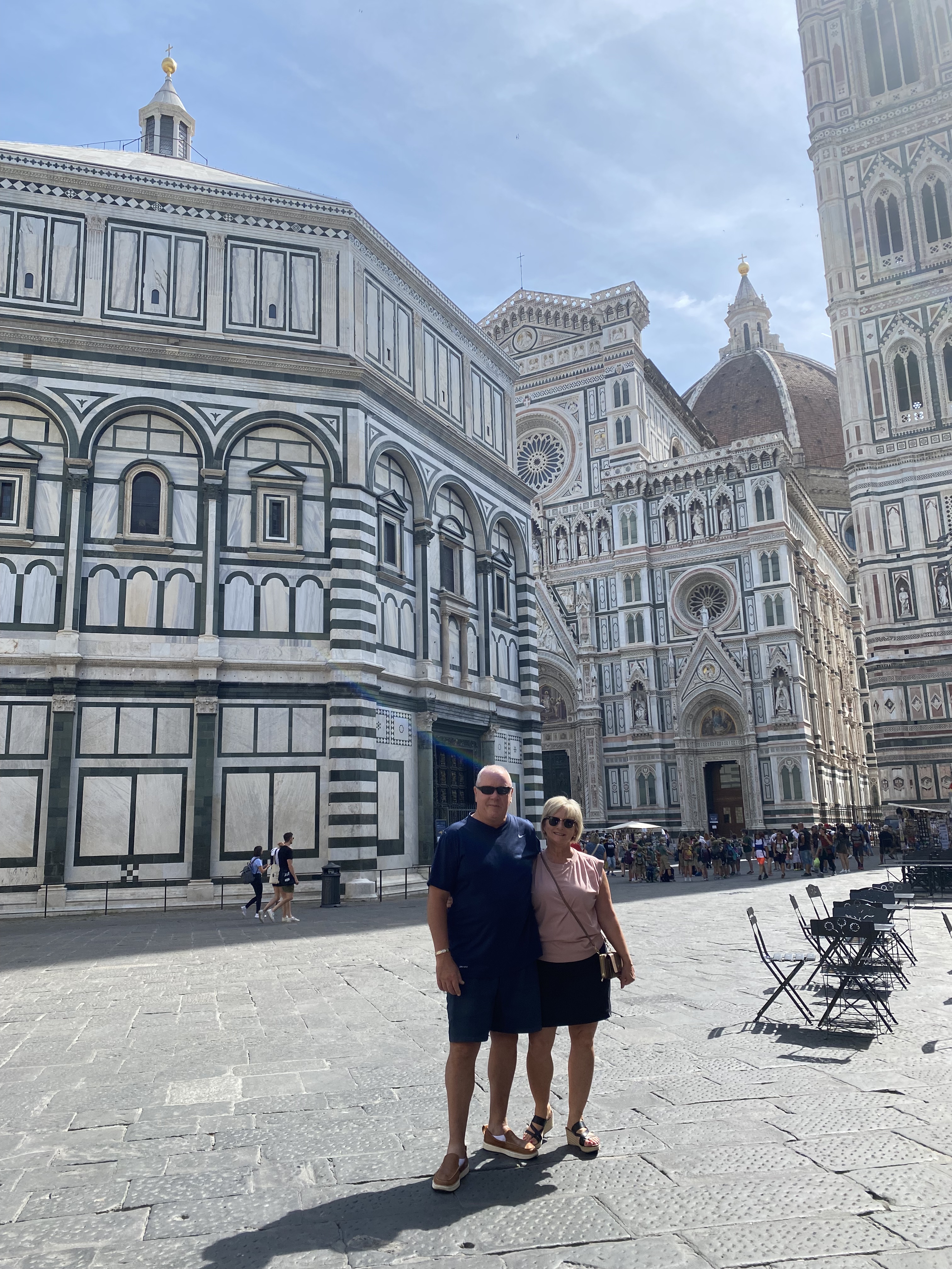 Galleria dell’Accademia to see Michelangelo’s David; Piazza del Duomo (Cattedrale di Santa Maria del Fiore, Battistero di San Giovanni, and Campanile di Giotto); Ponte Vecchio; Piazza della Signoria