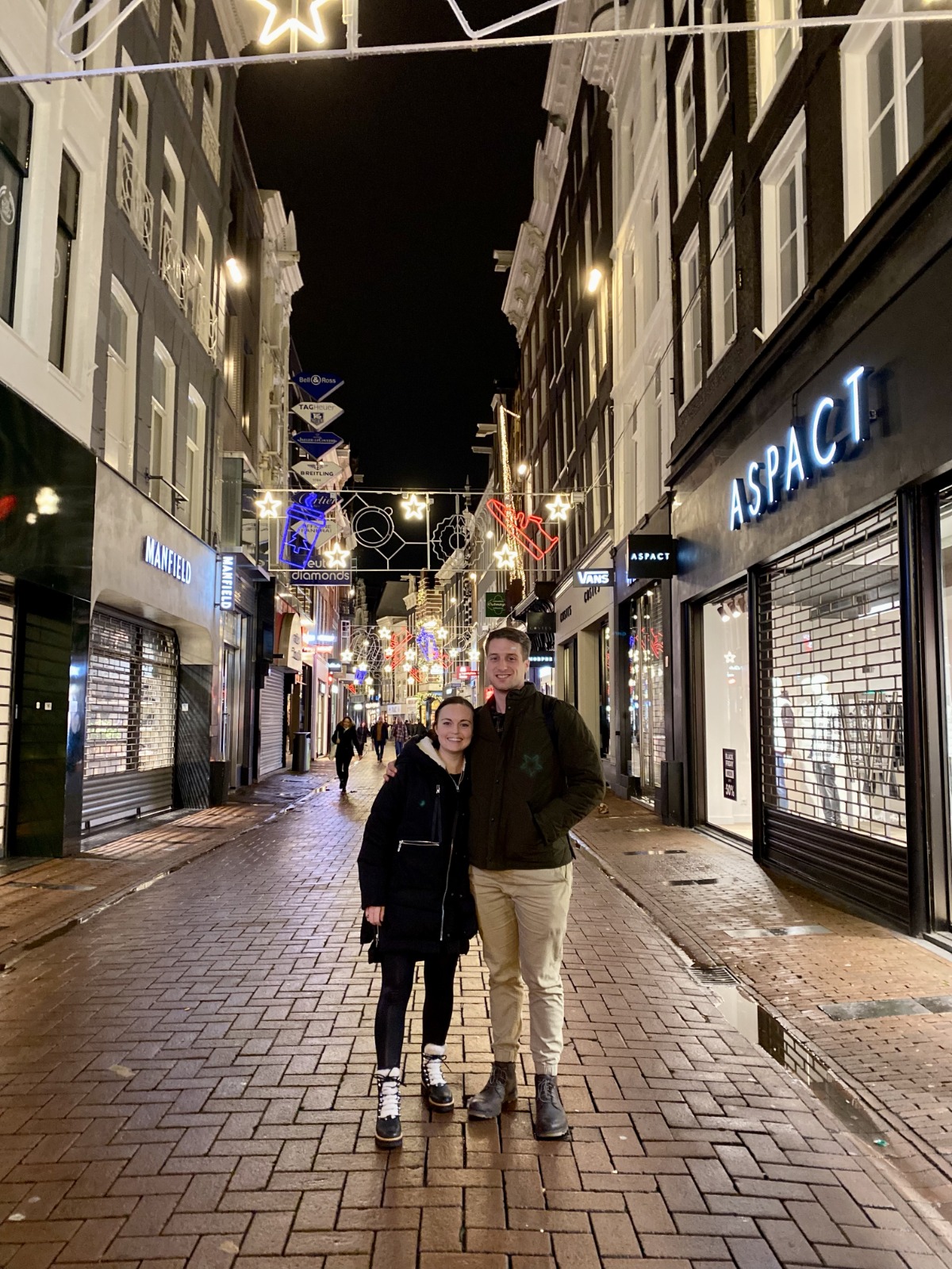 Friday morning we were very confused when we opened up the windows and it was still pitch black dark out at 7:30am. I checked and sunrise wasn’t until well after 8am! We had a really good breakfast at Lexi’s Coffee & Bakery – waffles, coffee, and fresh squeezed orange juice. After breakfast we took the train to Museumplein, a neighborhood with tons of great museums. Michael did a tour of Heineken Brewery and us girls went to Rijksmuseum, an art museum with an extensive collection of masterpieces featuring Van Gogh and Rembrandt. That afternoon we toured Anne Frank’s house, the canal house that the Frank family and others hid in during German occupation of WWII. The home was turned into a museum, but much of the building was preserved in its original state, and now includes exhibits of Anne’s life and what life was like in the Secret Annex. It was an incredibly moving experience.