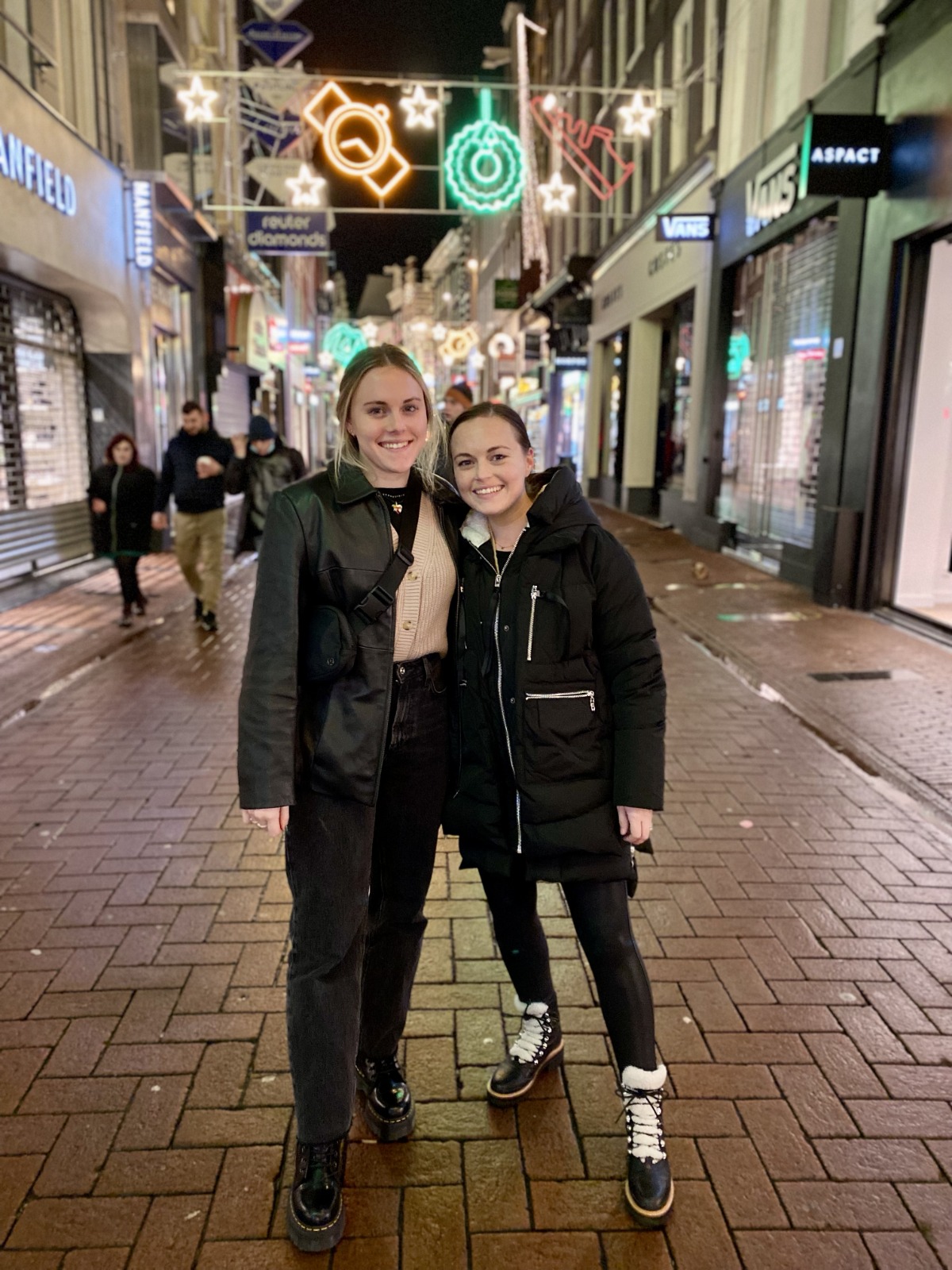 On Thursday morning we were on our way to Amsterdam. We took a direct flight from Venice, Lucy’s first plane ride! Our original flights were cancelled only a couple of weeks before our trip, and our rescheduled flights shortened our trip quite a bit, so we only had Thursday late afternoon and all day Friday to explore. Lucy did pretty good on the plane, the pressure definitely bothered her ears, but she recovered quickly. We took a train from the airport to the Flower Market district, where we were staying in the city. We passed a restaurant right next door to our hotel before checking in that claimed to have the best burgers in Amsterdam (Ter Marsch & Co). After cleaning up we decided to check it out for dinner. We all ordered fun cocktails (although Michael opted for a local beer), burgers and fries. Italy has a few spots that do decent burgers, but not comparable to what we’re used to in America. Although I will say the fries in Italy are always amazing. Needless to say, we hadn’t really had a good burger in about a year. The burgers lived up to the hype! It was a really fun place and I would highly suggest it to anyone visiting. Our evenings tend to end a little earlier than they used to, so we headed back to the hotel to put Lucy down for bed while my mom and Greta went to walk the area. They brought back different flavors of stroopwafel, a thin layer waffle cookie with a caramel filling.