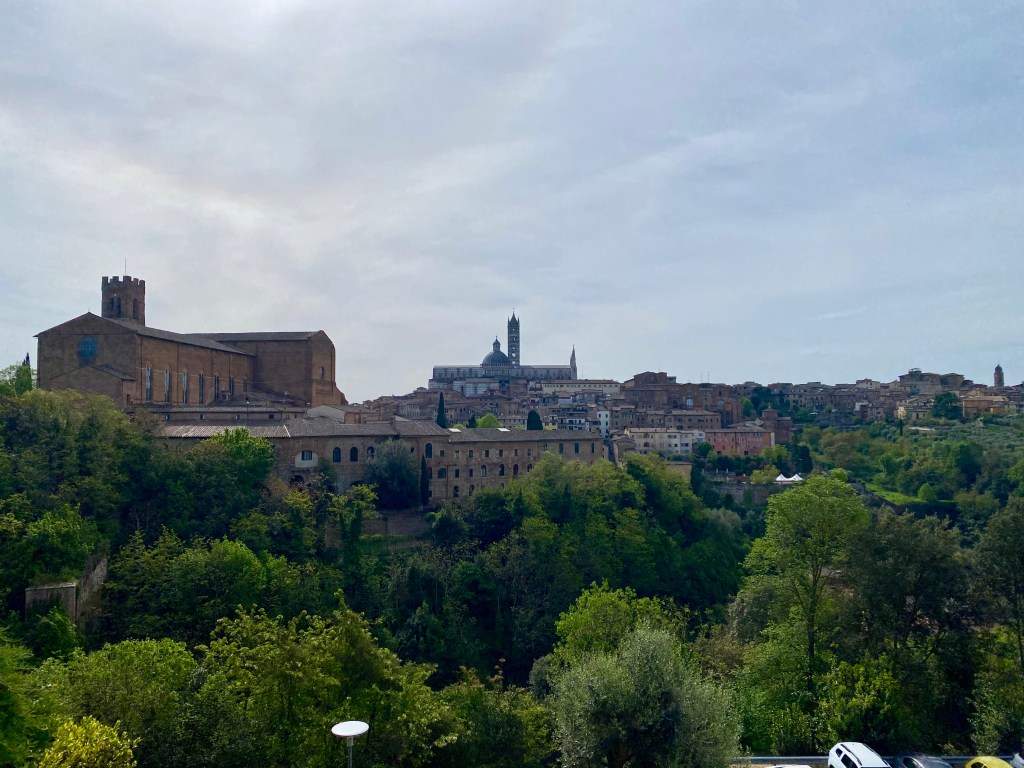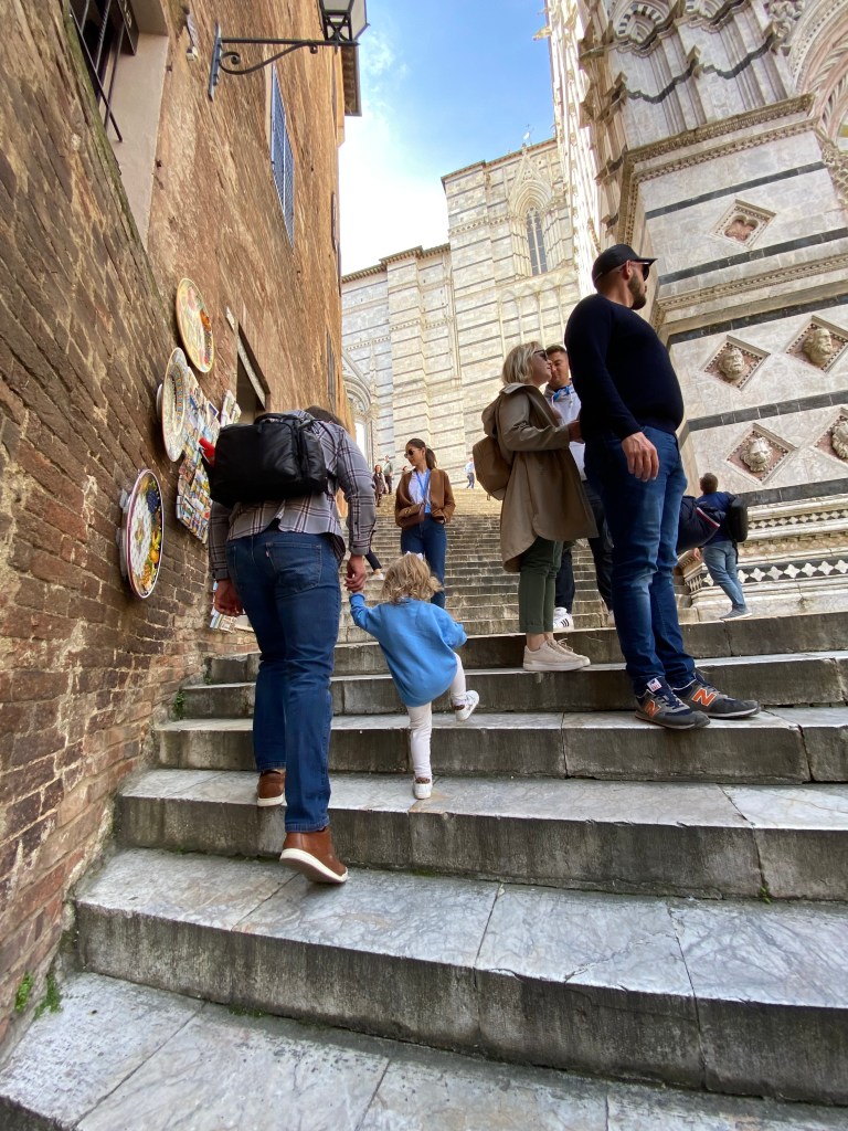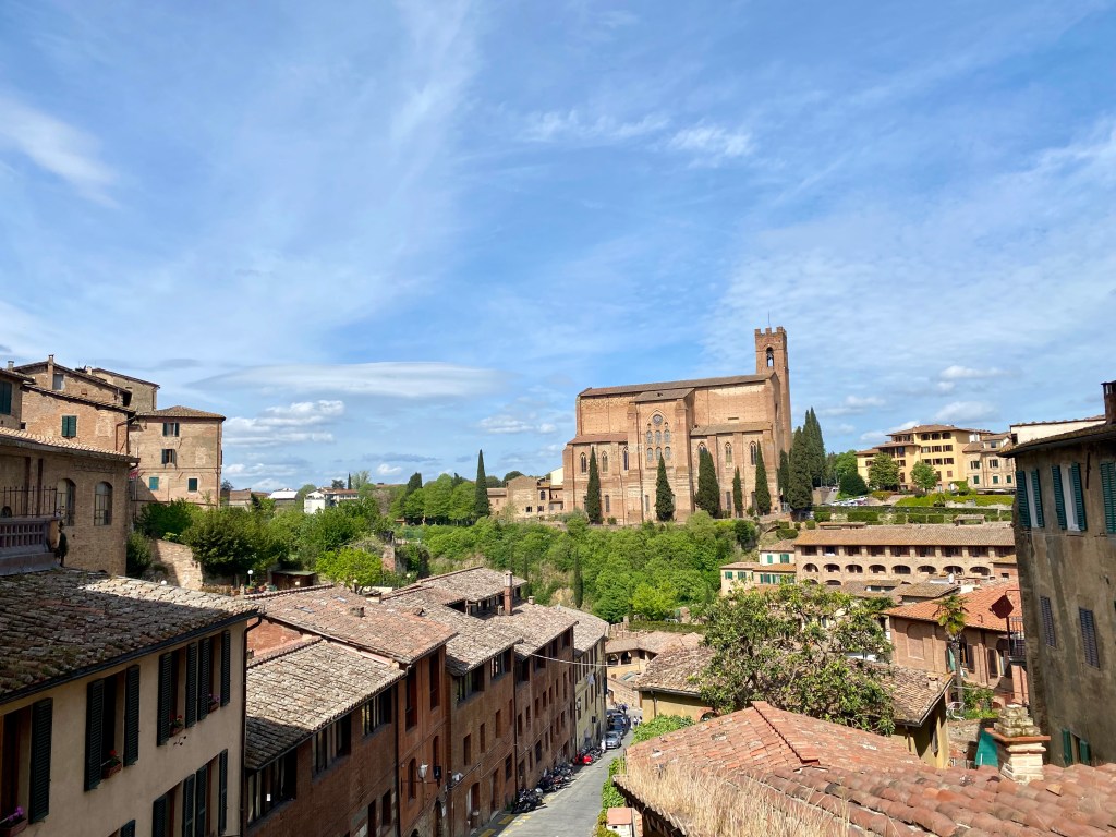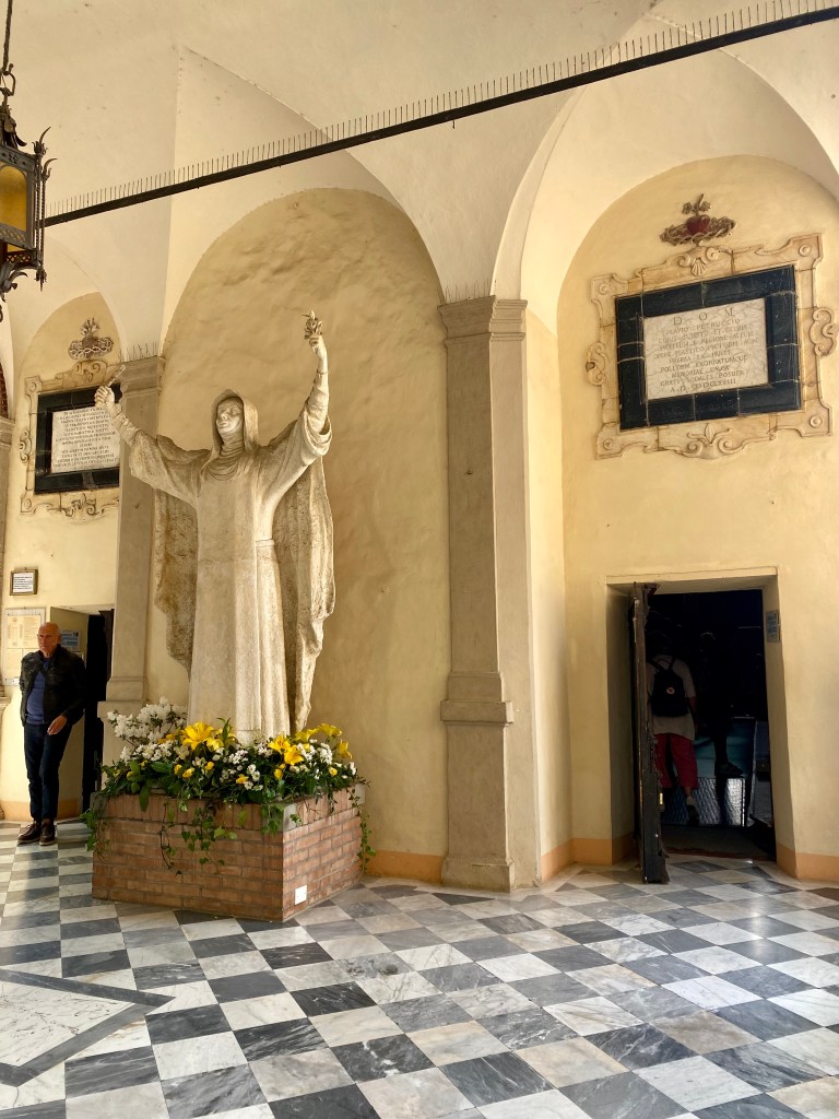 We spent the rest of the morning walking all through the city, and came across a ceremony happening at St. Catherine’s family home that is now a beautiful sanctuary. The Feast Day celebrations were starting there and then processing up to the Basilica for Mass. There were tons of people! We walked through town and up the steps on the back side of the Duomo. It is so stunning and reminded us a lot of the duomo in Florence. On our walk back, we stopped back at the sanctuary after the ceremony was over. There is a really pretty small chapel, pretty views of the city, and a gift shop.
