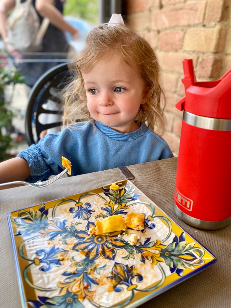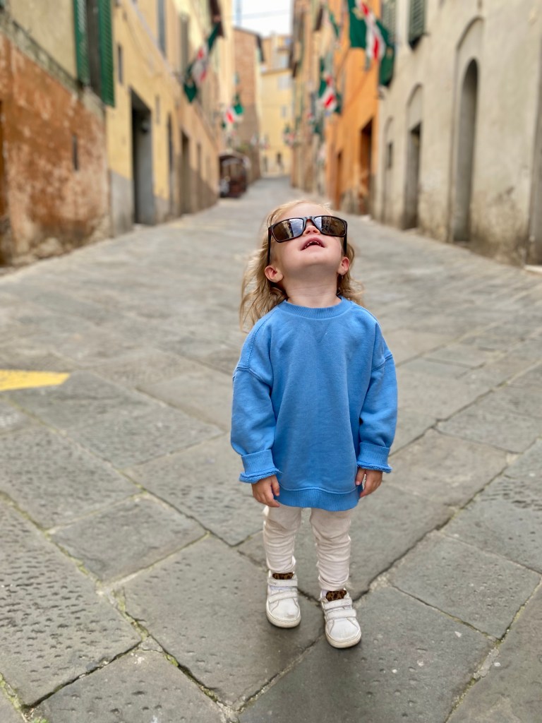 We ended the evening at Alle Logge di Piazza for dinner. We ate here when we first came as a family, it’s a fun spot right in the center of town. Lucy decided to drench herself from head to toe in butter from her pasta, so she got to hop in the shower before bed when we got home.