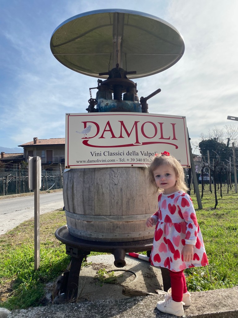 Damoli – We discovered Damoli at the bazaar hosted on base that features vendors from all over Europe. We ended up driving out to their property in Negrar, in the heart of Valpolicella Classico. The winery is literally their family’s home and they’ve been producing wine there for five generations. The daughter is who showed us around and poured some wines for us, and while we were tasting her father came in and sat with us. He didn’t speak a word of English, but seemed to enjoy watching Lucy.