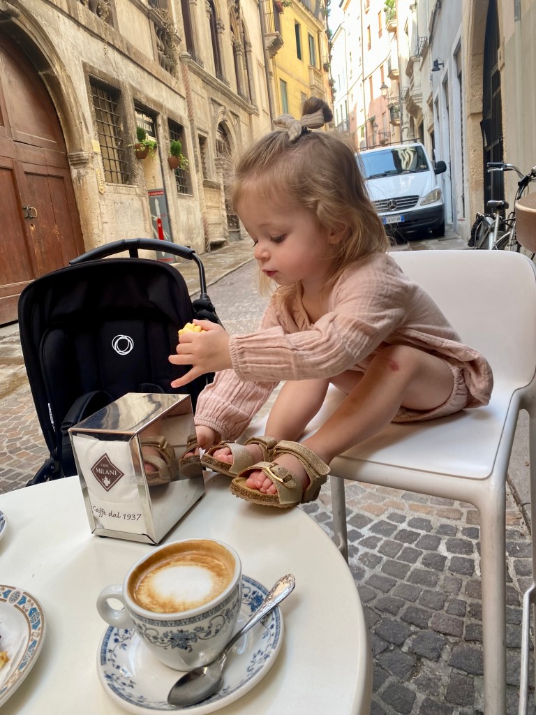 Casa Magrin – Our favorite in Vicenza. Lucy and I came here every Thursday morning before heading to the market. We often all went together Saturday mornings, too. Owned by the Magrin family – Daniele and Tiziana, and their daughters, Ana and Valentina. Ana always made Lucy and I pancakes to share and she often had special treats for Lucy. Most caffes don’t have a full breakfast menu (only pastries), but Casa Magrin has good breakfast options. Also a nice spot to sit for a spritz in the afternoon or evening!